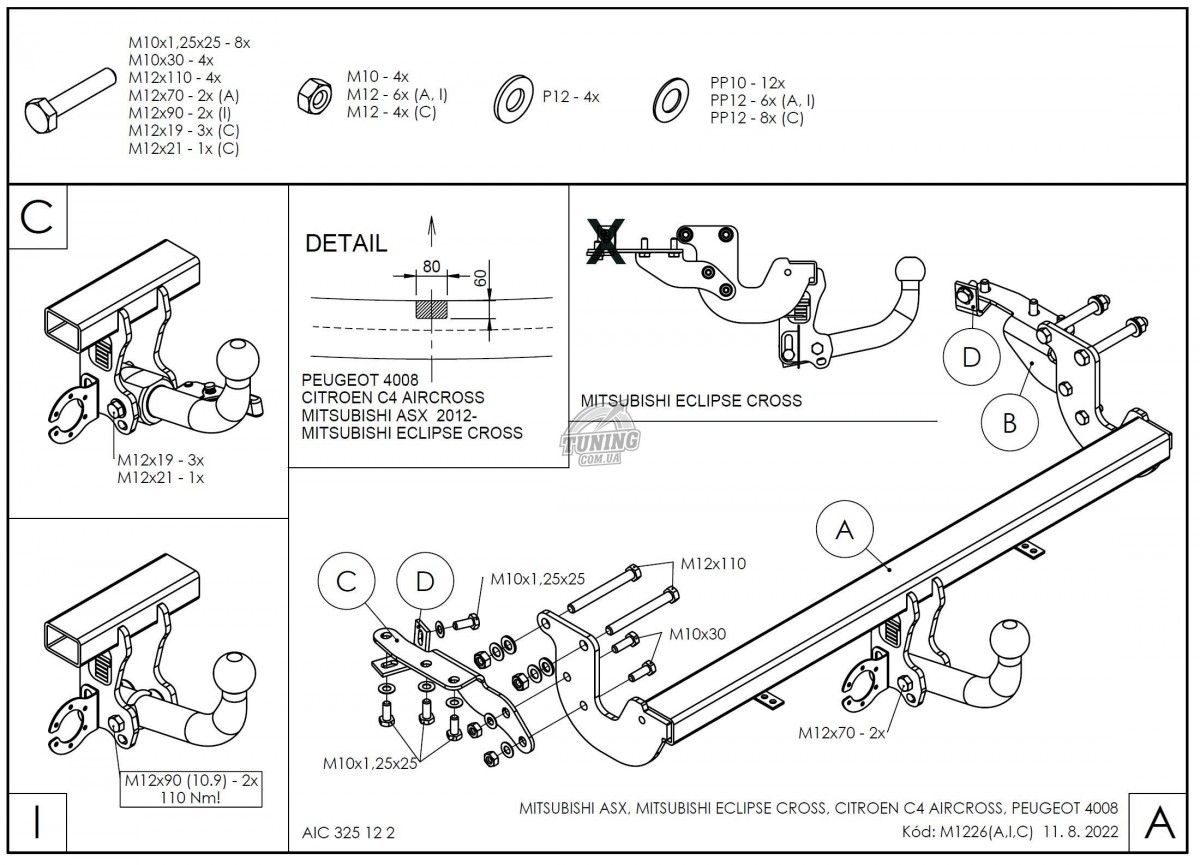 Спецификация: фаркоп Citroen C4 2012- Aircross