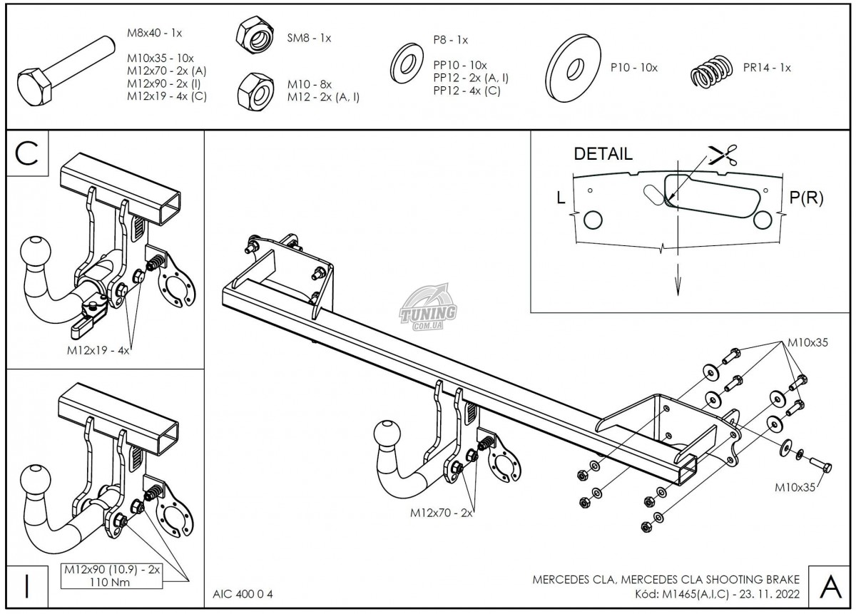 Для прицепа весом до 1700 кг.