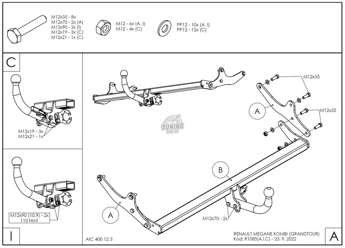 Для прицепов весом до: 1200 кг.