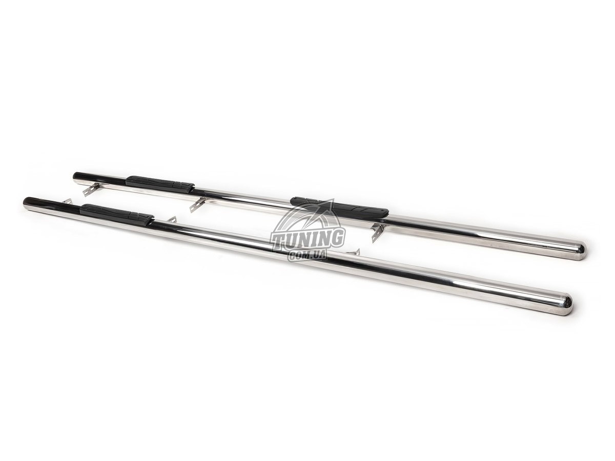 Підніжки Renault Master 2010 - виготовлені з нержавіючої труби високої якості. Діаметр труби 60мм, на деяких автомобілях також доступні варіанти діаметра 50мм. та 70мм. Для зручнішої посадки в автомобіль на порогах передбачені пластикові накладки. Бічні пороги труба Renault Master 2010 - з полірованої нержавіючої сталі дуже добре поєднується з оригінальними хромованими елементами автомобіля і прийде йому завершений вигляд. Комплектується поріг двома трубами, кріпленням та інструкцією з встановлення. Також наш сервіс надає монтаж обважування, це не довга процедура займе близько години. Дуже часто на додаток до порогів встановлюють передній кенгурятник і задній захист.