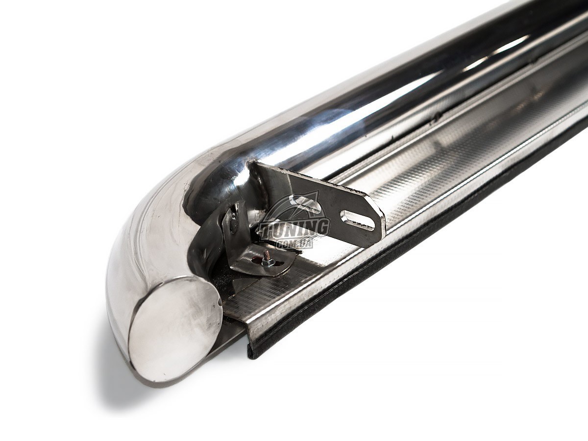 Плоскі бічні пороги з нержавіючої сталі на Volvo XC60 2008-2013, 2013 -. Кріплення до сталевої частини кузова болтами. У комплекті два пороги і кріплення.
